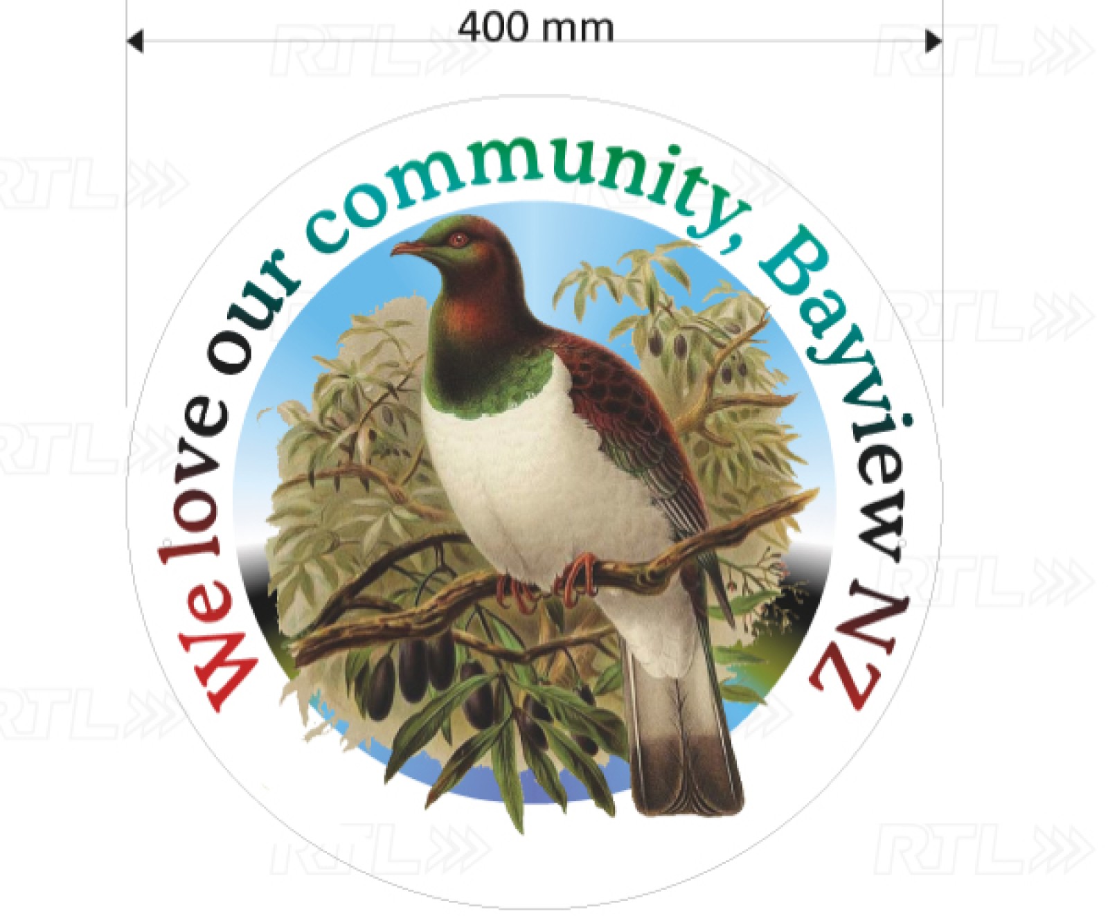 “Bayview locals take great pride in their community, and the signs are a fantastic way of showing that. With the abundance of native trees in our reserves and gardens, kereru are a frequent sight in Bayview’s skies and now also on fences around the neighbourhood. The Centre has thoroughly enjoyed working with RTL and we look forward to collaborating to create different iterations of the sign for future Bayviewians”