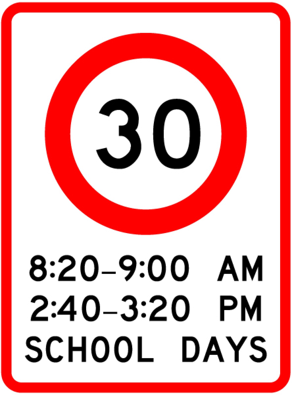 RS6 School Static Variable Speed Limit Signs changed in the Land Transport Rule: Setting of Speed Limits 2024 (see page 54 & 55 for urban and rural sizes):